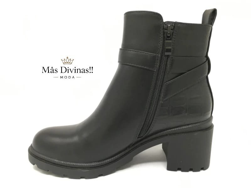 Botin negro casual con tacon de 6cm y plataforma gruesa, cierre mediante cremallera lateral. suela antideslizante.